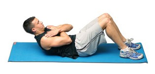 • Draw your abdominals in and slowly crunch your upper body to a position in which you can maintain neutral hip alignment.  Keep your chin tucked in to prevent a forward-head posture.  Hold the top position 2 seconds and slowly return to the starting position while maintaining the drawing-in maneuver.