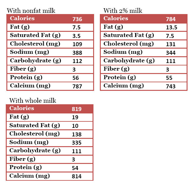 • 1  1/2 cups nonfat, 2% or whole milk (or milk substitute of your choice)