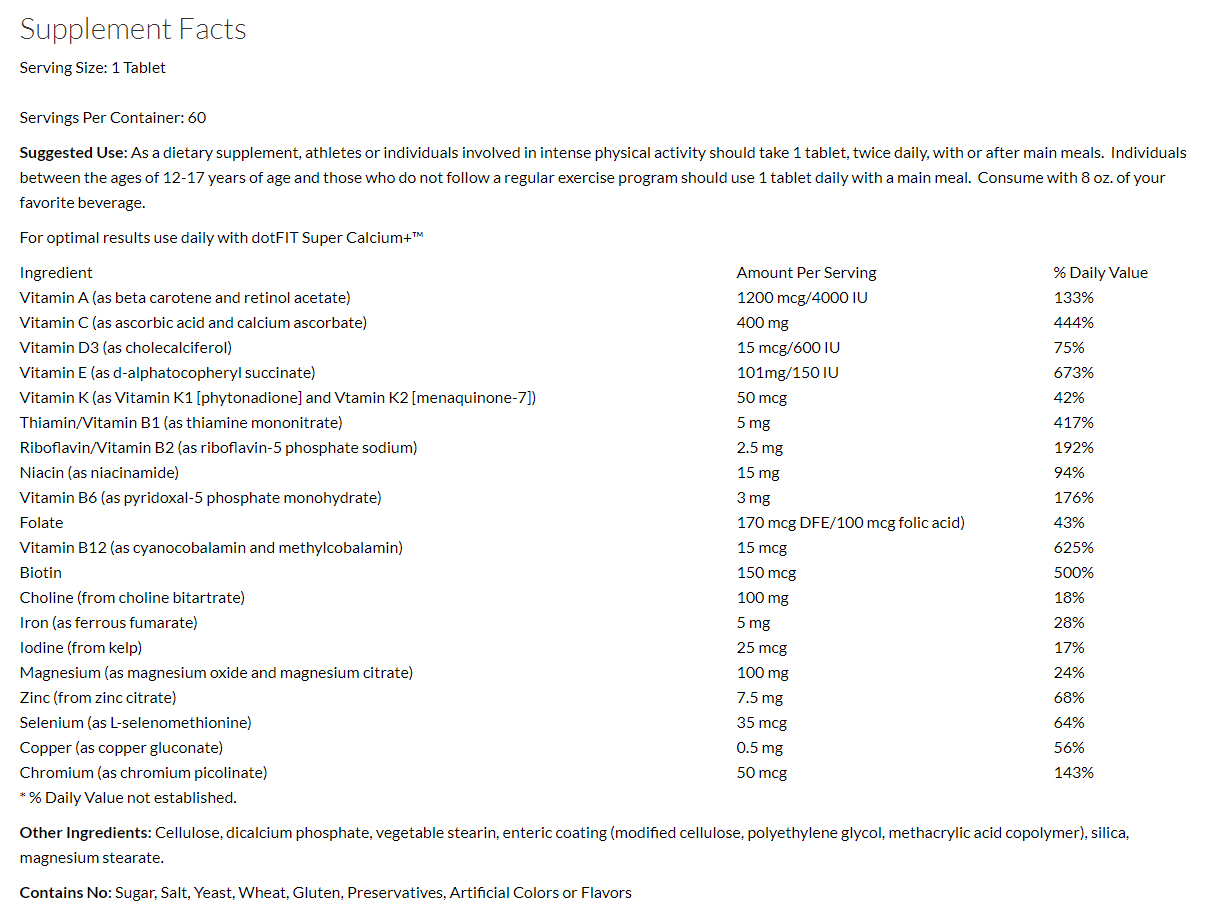 ** Active people age 18-50 take 2 –Active formula tabs daily (1 with AM meal, 1 with PM meal